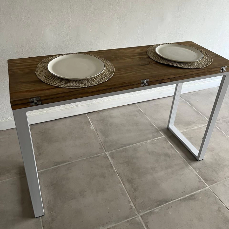 Mide 120 cm de ancho x 40 cm de profundidad cerrada/ 80 cm de profundidad abierta x 77 cm de alto